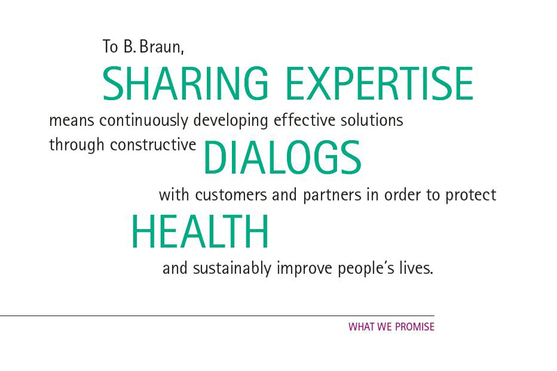 비브라운은 '전문성의 공유 (Sharing Expertise)'라는 기업 철학을 바탕으로 성장해 왔습니다. 전세계인의 건강 증진을 위해 끊임없이 니즈를 파악하고 새로운 기회를 찾아 효과적인 해결책을 찾기위해 열정적으로 노력하는 것이 비브라운의 성장 원동력입니다.